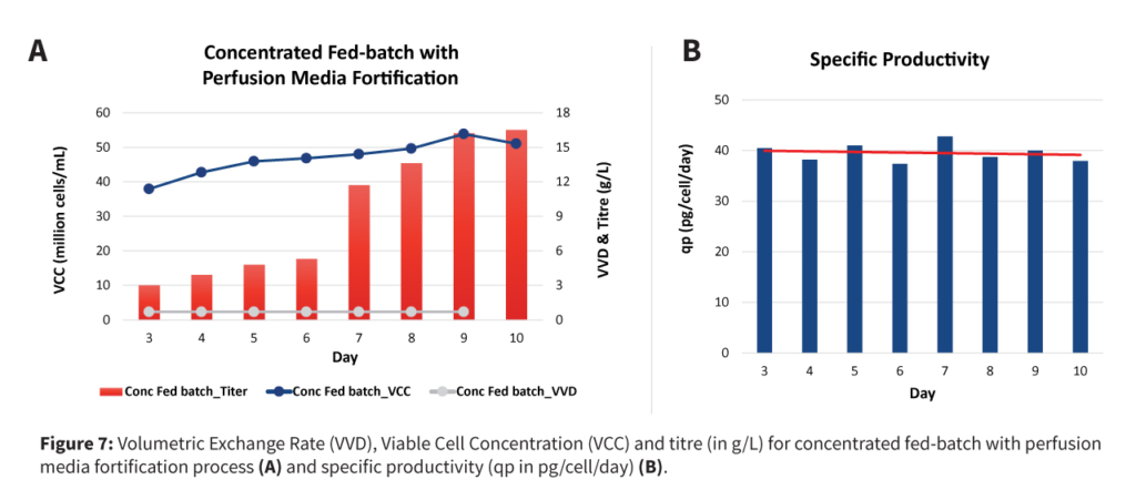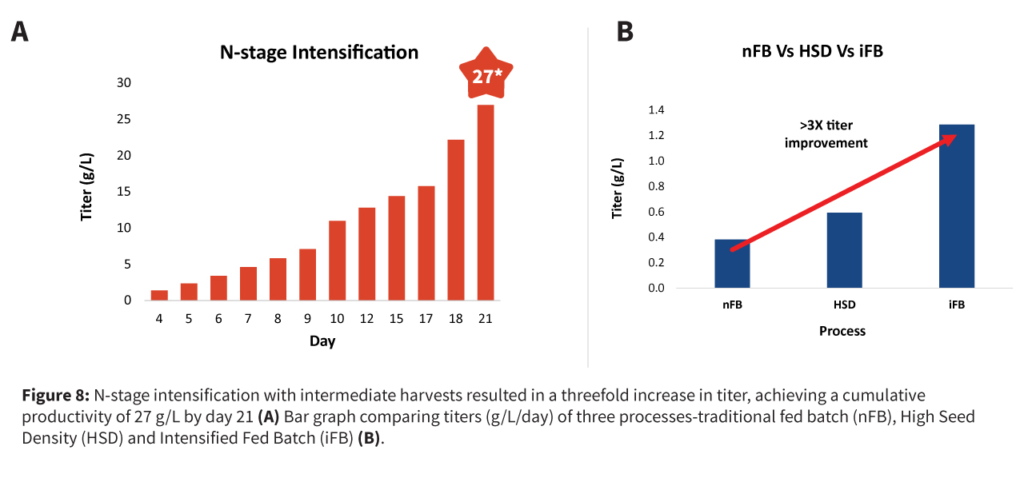 This approach delivered a threefold increase in titer and production capacity while maintaining cell viability and product quality, all without the higher costs of full perfusion systems.